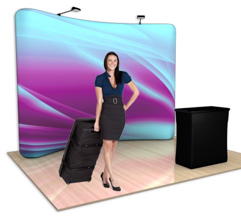 The Quick-Zip 10' curved display, our most popular item, will ensure that you keep an edge on your competition. Considered to be the future of trade show displays, this high-resolution zippered tension fabric graphic display will be sure to command the attention you need without breaking the bank. You have to option to print double-sided for an additional 5 and add on a graphic counter skirt for 9 to complete the look. Lead time is 7 business days. INSTRUCTIONS FOR GRAPHIC SUBMITTAL WILL BE EMAILED TO YOU UPON PURCHASE or Call 888.315.9617 to speak with a customer service representative.